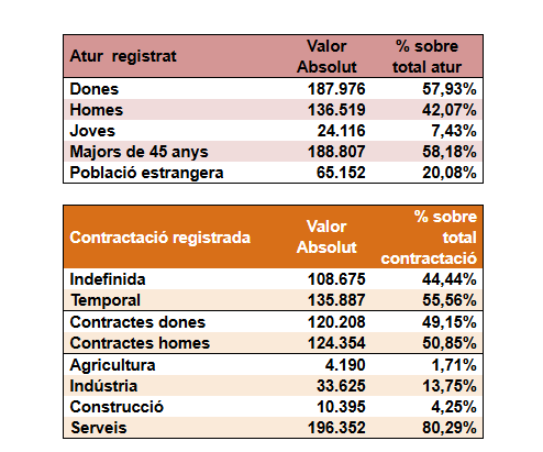 Amb relació als homes, les xifres d’atur se situen en 136.519 persones, amb una augment de +1.468 persones aturades, vers el mes anterior (+1,09%) i una reducció interanual de -5.254 persones (-3,71%). Pel que fa a l’atur de les dones, aquest es situa en 187.976 persones, augmentant així en +955 persones a nivell mensual (+0,51%), fet que implica una reducció interanual de -5.090 persones aturades (-2,64%).