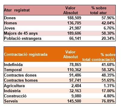 Amb relació als homes, les xifres d’atur se situen en 136.705 persones, amb una augment de +478 persones aturades, vers el mes anterior (+0,35%) i una reducció interanual de -6.198 persones (-4,34%). Pel que fa a l’atur de les dones, aquest es situa en 188.509 persones, augmentant així en +1.500 persones a nivell mensual (+0,8%), fet que implica una reducció interanual de -5.227 persones aturades (-2,7%).