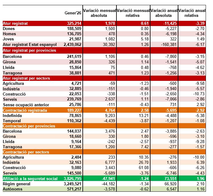 L’atur augmenta aquest mes de gener en 1.978 persones i comença l’any amb 325.214 persones desocupades (+0,61% respecte el mes anterior). En termes interanuals, l’atur decreix en -11.425 persones menys (-3,39%)